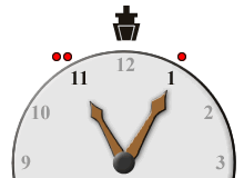 | The second choice when meeting another vessel head on would be to turn to port, so two short blasts means turning to port. | See clockface below | |